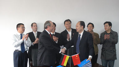 經過數(shù)輪緊張談判,2009年11月18日,集團公司所屬長沙長泰公司與德國徠斯機器人公司就工業(yè)機器人領域進行業(yè)務合作簽定了合資合同。集團公司副總經理、長泰公司董事長馬思一先生與德國徠斯機器人公司代表、亞太區(qū)總裁Manfred Emont先生代表雙方分別在合資合同書上簽字。