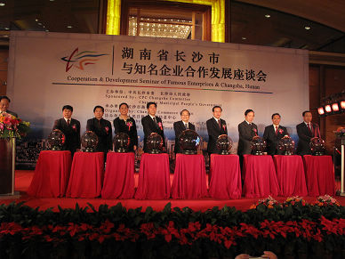 全國人大常委會原副委員長蔣正華在會上發表了講話。他認為長沙在克服金融危機影響、實現又好又快發展上取得了令人稱道的成績,希望有實力的企業多到長沙看看,加強與長沙的交流合作,實現互利雙贏。中共湖南省委常委、長沙市委書記陳潤兒在會上介紹了長沙的發展成就和投資優勢,表達了加強長沙與知名企業合作,實現互利共贏的良好愿望。會議由長沙市委副書記、市長張劍飛主持。