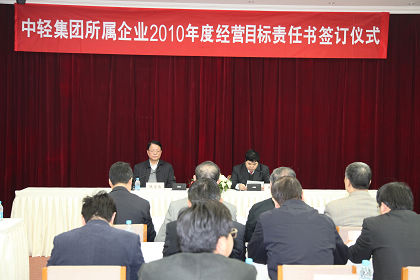 中國輕工集團公司所屬企業2010年度經營目標責任書簽訂儀式于3月30日在集團總部舉行,集團公司領導、集團公司部門負責人、二級企業主要負責人出席了儀式。