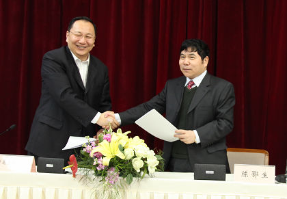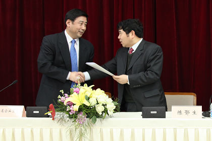 陳鄂生總經理與日化院院長王萬緒簽訂經營目標責任書