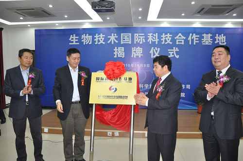 10月9日,科技部“生物技術國際科技合作基地” 揭牌儀式在集團食品發酵院隆重舉行。科技部國際合作司靳曉明司長、綜合與計劃處張健處長、集團陳鄂生董事長、食品發酵院蔡木易院長等出席了此次揭牌儀式。靳曉明司長和陳鄂生董事長共同為生物技術國際科技合作基地揭牌。