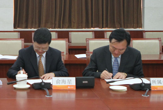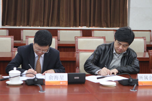 集團公司總經(jīng)理俞海星與食品院黨委書記董守誠簽訂任務(wù)合同書