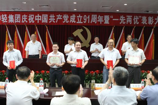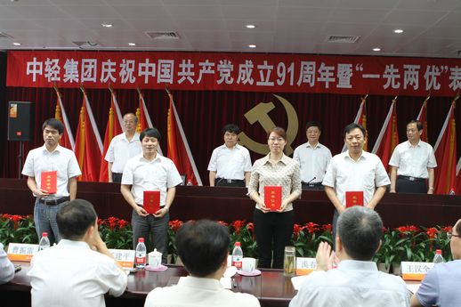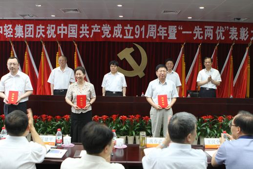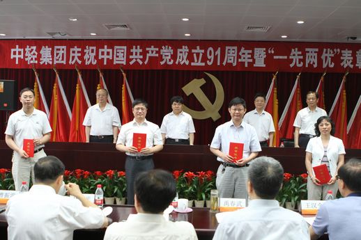 2012年6月29日下午,中輕集團慶祝中國共產黨成立91周年暨“一先兩優”表彰大會在集團公司新的總部辦公大樓——中輕大廈隆重召開。會議隆重表彰了集團公司先進基層黨組織、優秀共產黨員、優秀黨務工作者和集團公司2009-2011年度創建“四好”領導班子先進集體。集團公司黨委書記、董事長陳鄂生在會上作了重要講話。集團公司總經理俞海星主持會議。