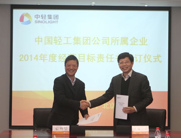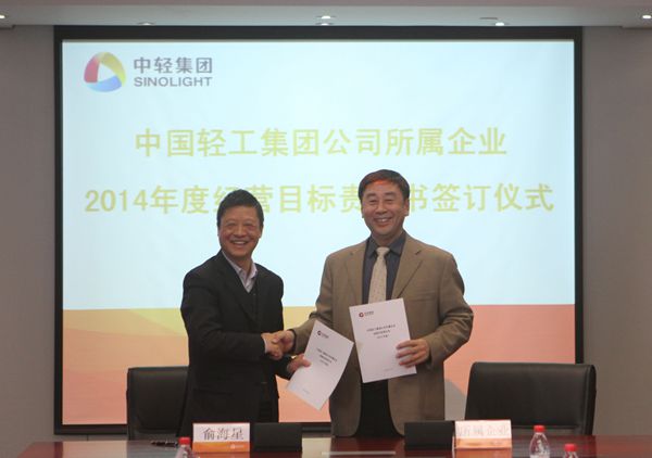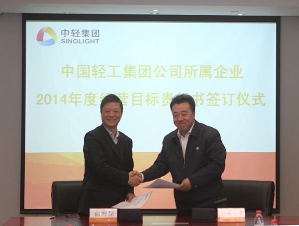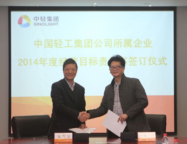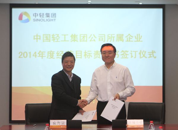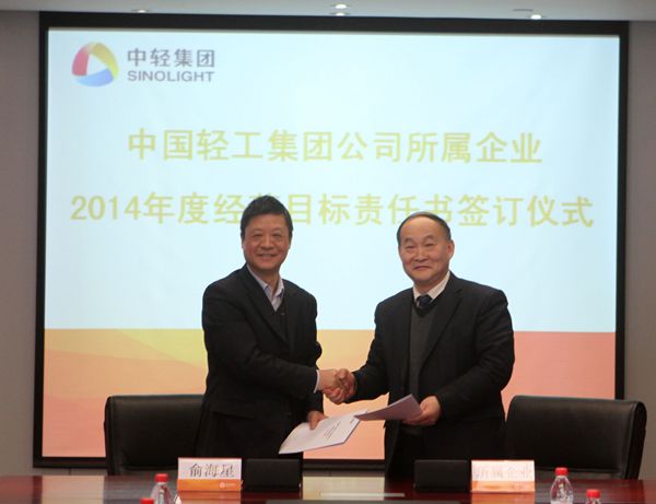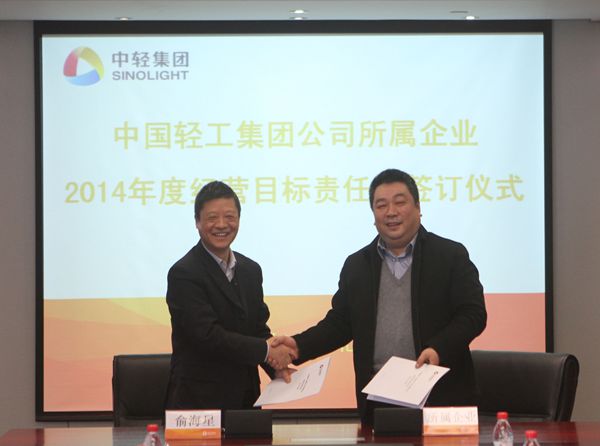 集團公司總經理俞海星在儀式上代表集團公司與所屬11家二級企業主要負責人簽訂了2014年度經營目標責任書。