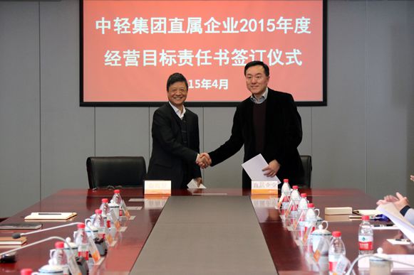 集團公司總經理俞海星與直屬企業(中輕對外公司總經理王向陽)簽訂責任書