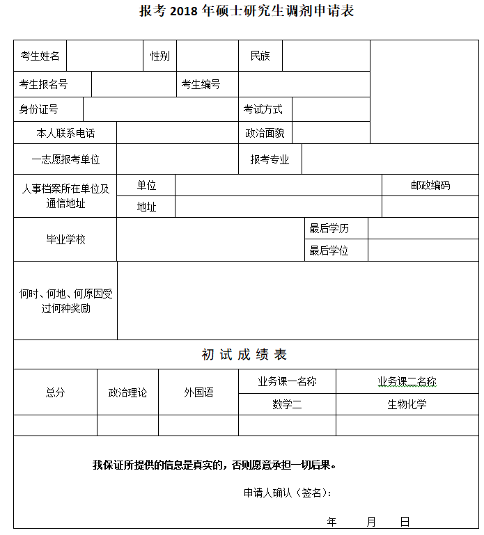 3.調劑信息和考生填報內容以中國研究生招生信息網上相關信息內容為準,考生接到我院調劑確認信息后,可參加我院研究生招生復試。復試合格后,考生需配合我院人力資源部調取檔案及其他相關材料,以便在有效時間內完成調劑工作。