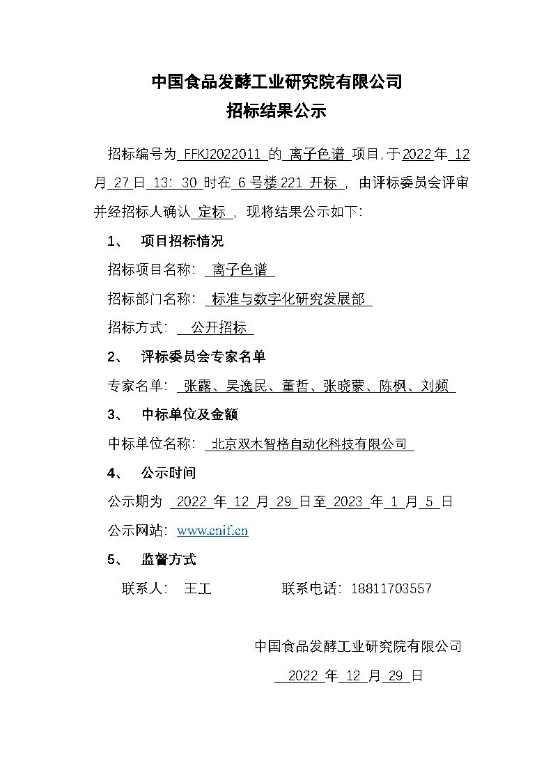 招標結果公示——離子色譜(招標編號:FFKJ2022011)