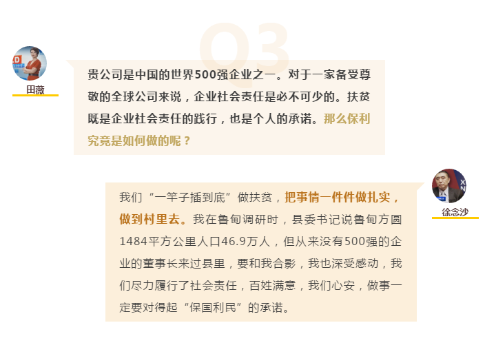 兩會期間,全國政協委員,中國保利集團有限公司黨委書記、董事長徐念沙接受中央廣播電視總臺CGTN World Insight節目專訪,講述保利脫貧攻堅責任舉措。