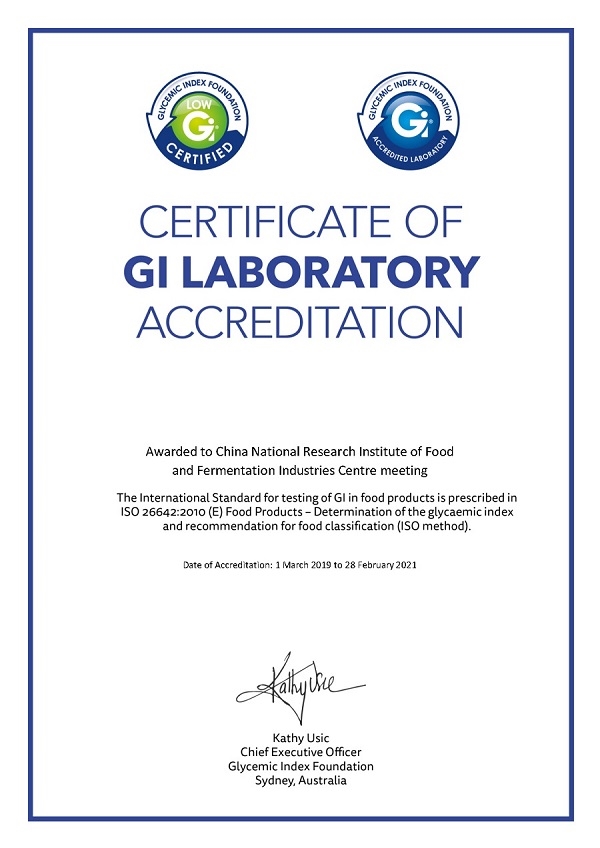 目前,GI測試實驗室擁有先進的測試設備和完善的醫療服務跟蹤體系,可以滿足從倫理申請、志愿者招募、食物GI測定到測試報告出具的整套流程。實驗室的中英文測試報告可供企業向澳大利亞GI基金會申請低GI產品標識,并提供機會幫助企業將產品GI信息納入到國際食物GI值數據庫中。