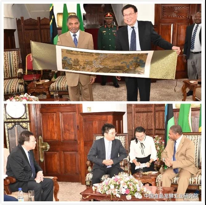 2019年9月10日,桑給巴爾總統(tǒng)謝因會(huì)見(jiàn)了中國(guó)駐桑給巴爾總領(lǐng)館總領(lǐng)事謝小武和食品院黨委書記董偉紅一行。謝因總統(tǒng)回顧了中桑傳統(tǒng)友誼,對(duì)中國(guó)政府長(zhǎng)期以來(lái)對(duì)桑給巴爾政府和人民的無(wú)私援助表示衷心感謝,對(duì)食品院在培訓(xùn)過(guò)程中的全力付出表示高度贊賞,對(duì)培訓(xùn)所取得的成果表示感謝,并表示桑給巴爾政府將繼續(xù)支持食品院在當(dāng)?shù)亻_展培訓(xùn)活動(dòng)。謝因總統(tǒng)與董偉紅書記互贈(zèng)了禮物,加深了中桑雙方的深厚友誼。桑給巴爾ZBC電視臺(tái)、《每日新聞》等當(dāng)?shù)匦侣劽襟w對(duì)此進(jìn)行了專題報(bào)道。