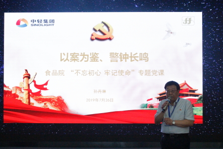 根據(jù)保利集團(tuán)黨委、中輕集團(tuán)黨委和食品院黨委“不忘初心,牢記使命”主題教育實施方案, 7月26日,院紀(jì)委書記孫丹琳為各部室中心副主任以上干部、在職黨員講授了《以案為鑒、警鐘長鳴》的專題黨課。