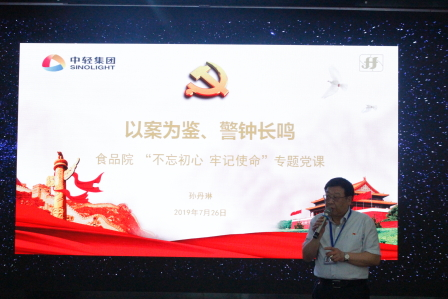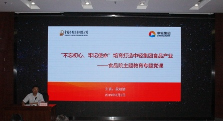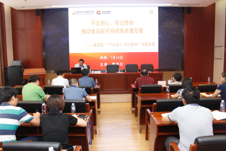 17. 8月2日,集團公司總會計師段趙清赴食品院講授“不忘初心、牢記使命”培育打造中輕集團食品產業專題黨課;
