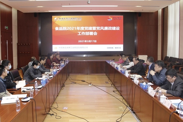 紀委書記孫丹琳代表黨委通報了《中國食品發(fā)酵工業(yè)研究院有限公司黨委2021年度黨建工作計劃》和《2021年度中國食品發(fā)酵工業(yè)研究院有限公司黨委中心組理論學習計劃》。