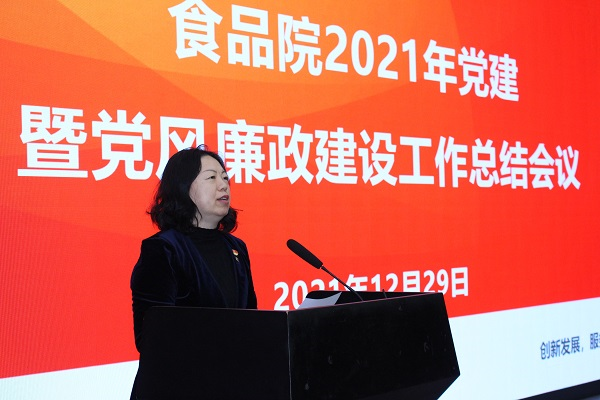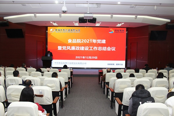 2021年12月29日,食品院黨委召開了2021年黨建暨黨風(fēng)廉政建設(shè)工作總結(jié)會(huì)議。食品院黨政班子成員,支部書記、支委、黨員代表、工會(huì)團(tuán)委負(fù)責(zé)人、中心主任以上干部及中食公司黨政班子、中食檢部門負(fù)責(zé)人共計(jì)60余人參加會(huì)議。
