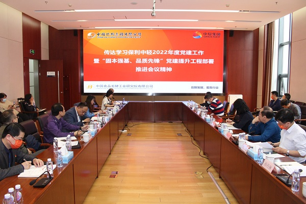 2022年4月20日,中國食品院黨委召開了2022年黨建暨黨風廉政建設工作部署會議,院黨政領導班子成員,黨支部書記、支委,工會主席,團委書記,各部門主任、副主任,中食公司黨政領導班子成員共計40余人參加會議。會議由保利中輕總經理助理、中國食品院黨委書記、總經理肖丹主持。