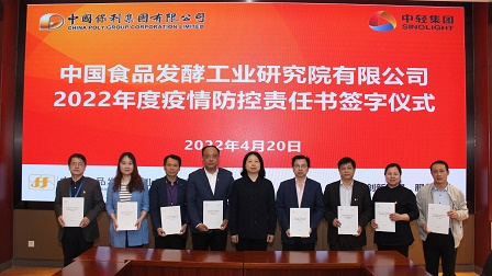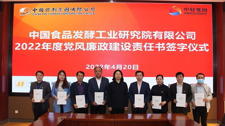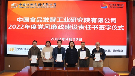 肖丹代表中國食品院黨委分別與8個業務部門、5個職能管理部門、2個直屬企業和中食公司簽訂了2022年度黨風廉政建設責任書及疫情防控責任書,壓實了中國食品院所屬各部門、直屬企業黨風廉政建設和疫情防控主體責任。