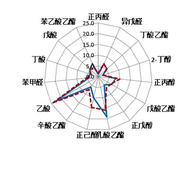 利用幾十年積累的醬酒關鍵數據庫,以氣相“指紋圖譜”、同位素質譜、手性化合物和微量元素分析比對、專家感官評價等方法,建立了優質醬酒甄選評價體系。經全方位甄選鑒定,醬香型系列白酒與茅臺鎮典型傳統醬香型白酒大數據庫比對、評價,關鍵風味組分雷達圖相似。